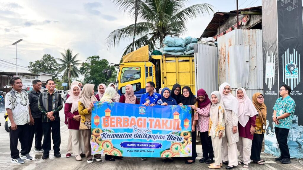 BALIKPAPAN – Kecamatan Balikpapan Utara (Balut) menggelar kegiatan berbagi takjil kepada masyarakat yang melintas di depan kantor kecamatan, Kamis (12/3/2026) sore. Kegiatan ini merupakan bagian dari upaya meningkatkan kepedulian sosial, sekaligus memeriahkan bulan suci Ramadan dengan berbagi kepada sesama.